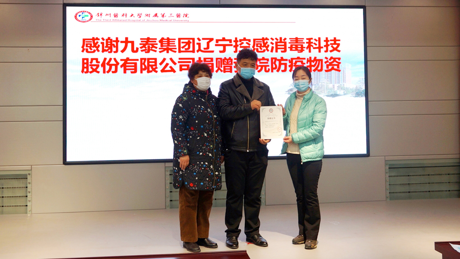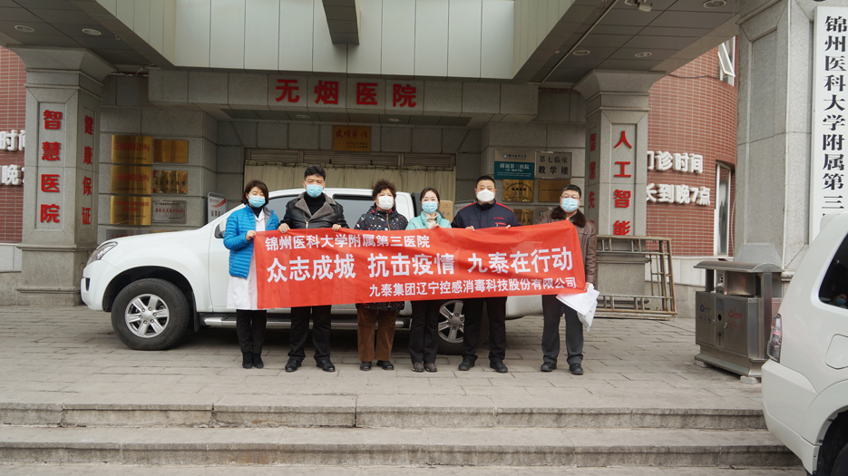 2月11日、25日,錦州九泰集團積極踐行企業(yè)社會責任,向錦州醫(yī)科大學附屬一院和附屬三院開展愛心捐贈活動,送去75%乙醇消毒液,有效緩解了新型冠狀病毒疫情防控物資匱乏壓力,發(fā)揮了積極的作用。對打贏新型冠狀病毒疫情阻擊戰(zhàn)提供了物資保障。